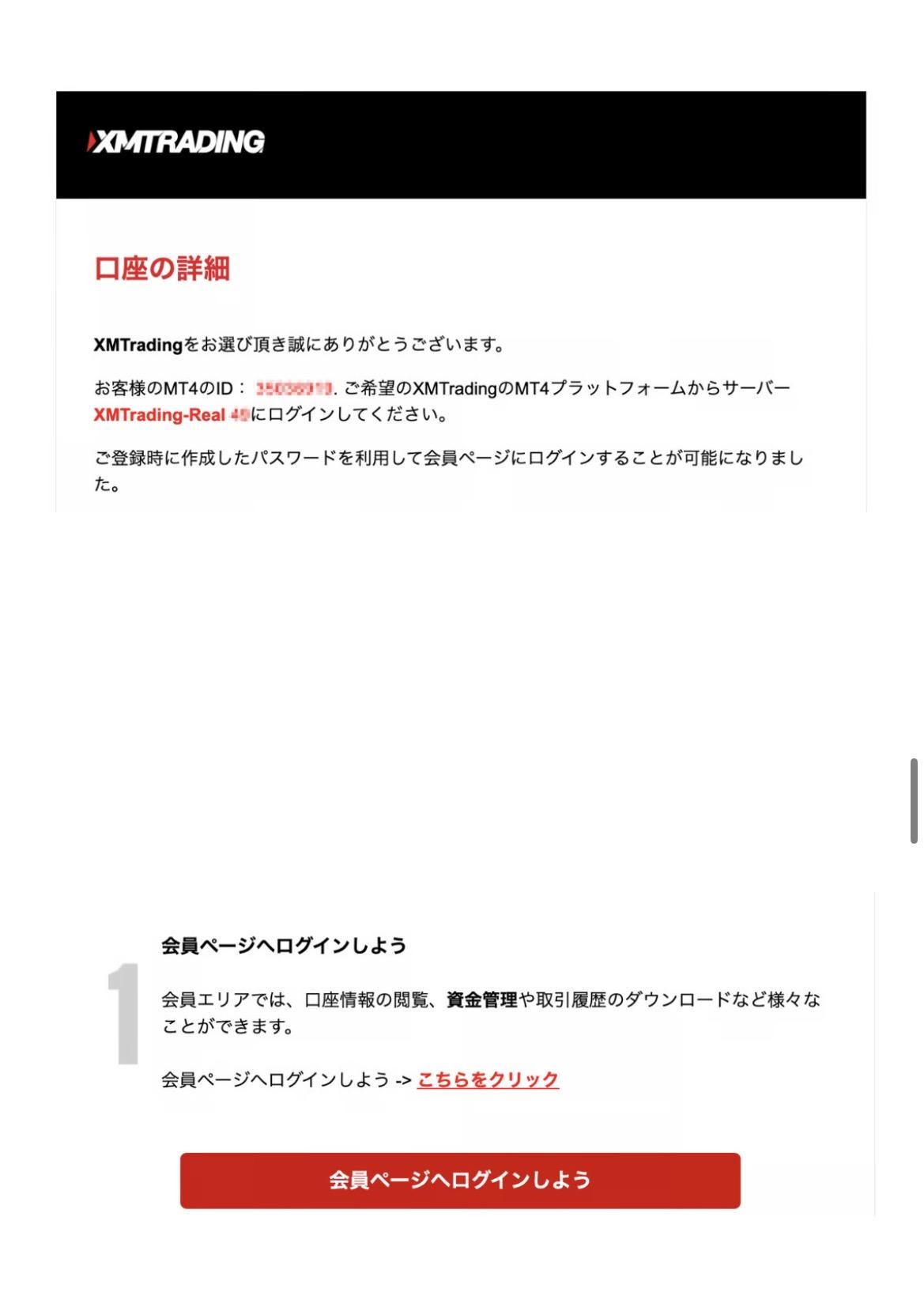 取引口座へログインするために、本登録完了メールに記載の「MT4のID(口座番号)」と「サーバー名」を準備してください。
